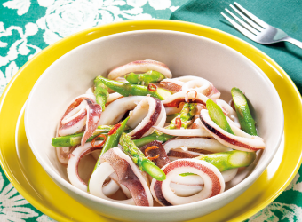 アボカドは皮を取り除いて7~8mm厚さに切り、レモン汁(分量外)を振る。