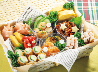 深めの器に5を入れて4を立てて並べ入れ、6を飾る。