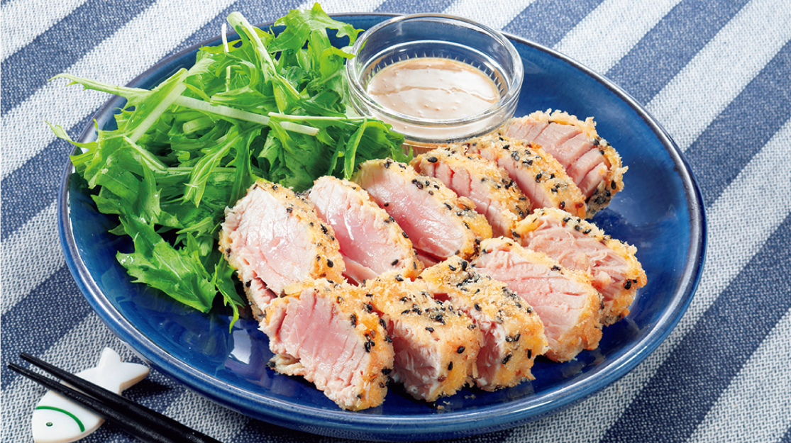 まぐろは袋の表示通りに解凍し、塩、こしょうをして冷蔵庫で冷やしておく。