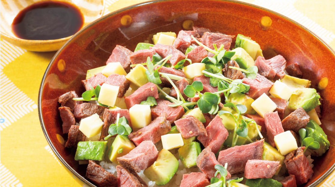 ローストビーフは1.5cm角に切る(肉汁かたれがあれば絡ませておく)。チーズは1cm角に切る。アボカドダイスは冷凍のままレモン汁(分量外)を少量振りかけておく。